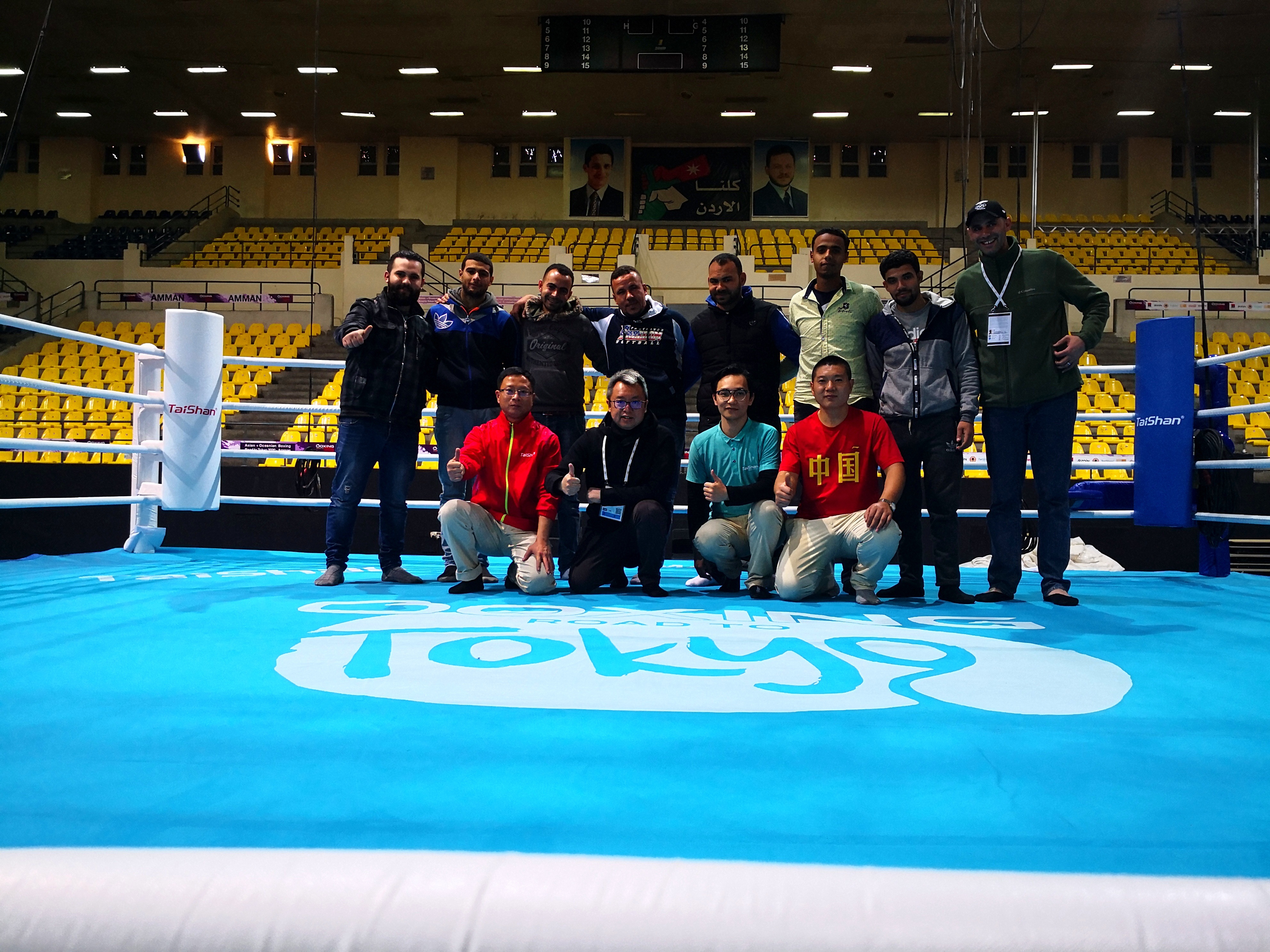 作为东京奥运会中国唯一赛事服务商,泰山体育正在用行动向世人展示中国智造的能力与担当!随着泰山体育的拳击器材与服务人员顺利抵达约旦首都阿曼,2020年东京奥运会亚洲&大洋洲拳击奥运资格赛于今日打响。比赛现场,泰山体育拳击器材与服务保障小组再次成为全球瞩目的焦点。