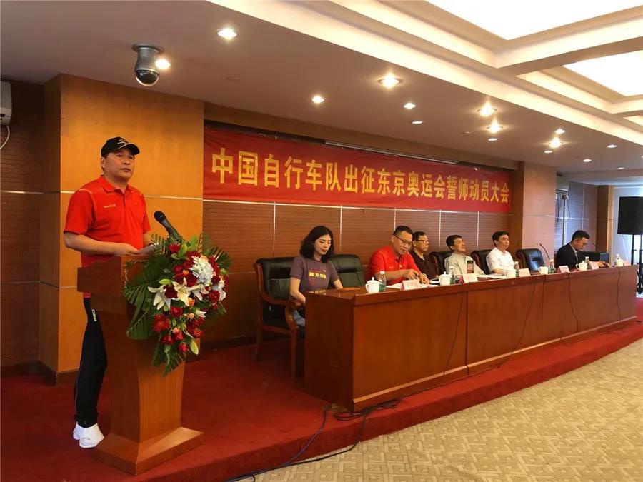近日,东京奥运会中国体育代表团名单正式公布,代表团总人数为777人,其中运动员431人,教练员、领队、科医人员等运动队工作人员307人,团部工作人员39人。本届东京奥运会是中国体育代表团境外参赛规模最大的一届奥运会。其中自行车项目代表团由17人组成,运动员9人、工作人员8人。7月14日,中国自行车队出征东京奥运会誓师动员大会在老山训练基地举行,泰山体育副董事长卞青峰受邀出席并致辞。