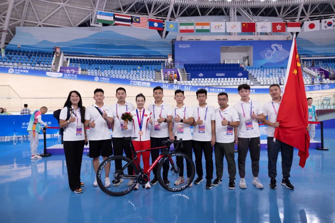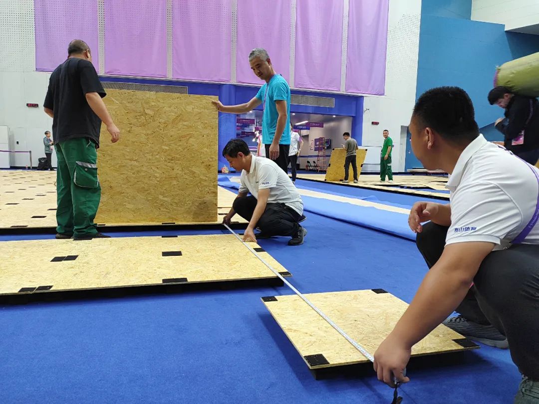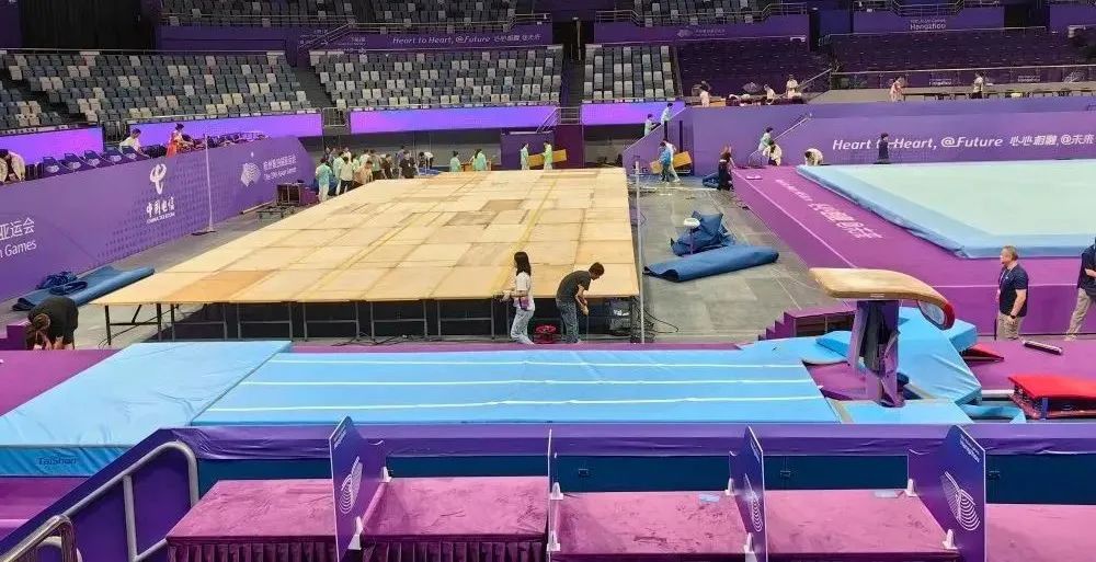泰山体育作为亚运会官方供应商和服务商,为田径、体操、举重、自行车等12大项、17个分项提供器材与服务,派出近百人的专业服务保障团队,全过程、全赛时负责赛事场地布置、转场、器材安装、调试、技术检查等比赛服务,成为亚运会名副其实的“守卫铁军”。